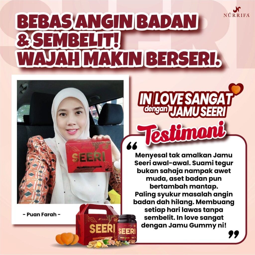 JAMU SEERI Suplimen Pertama Di Malaysia Yang Diformulasikan Khas dari Herba Nusantara Premium yang membantu khusus dalam masalah angin badan & masalah dalaman wanita.