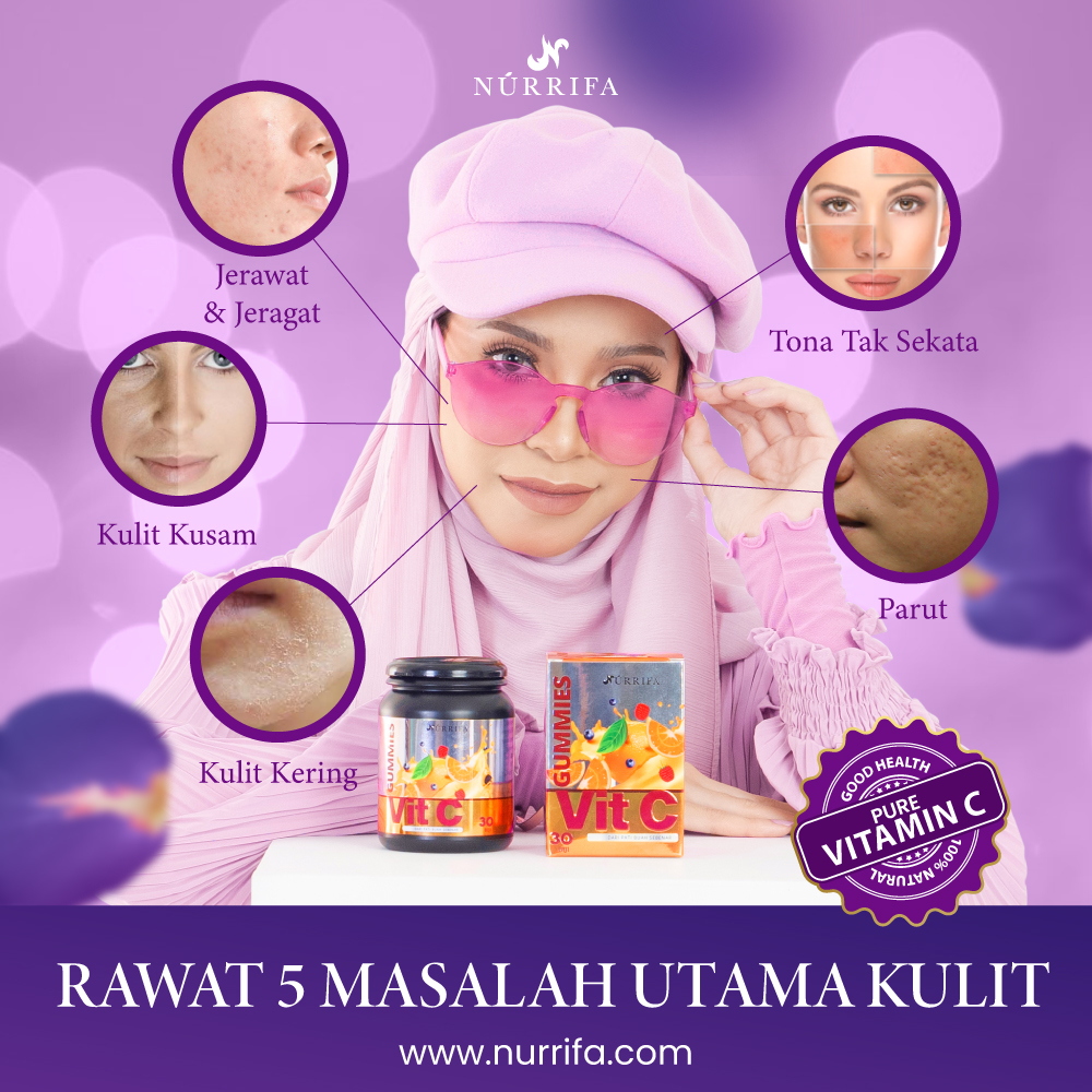 Nurrifa Gummies VitC Pertama Di Malaysia Yang Diformulasikan Khas Mengikut Kajian Doktor Pakar Untuk Optimakan Penjagaan Kulit Wajah dari Jeragat, Jerawat, Bintik Hitam & Garis Halus.
